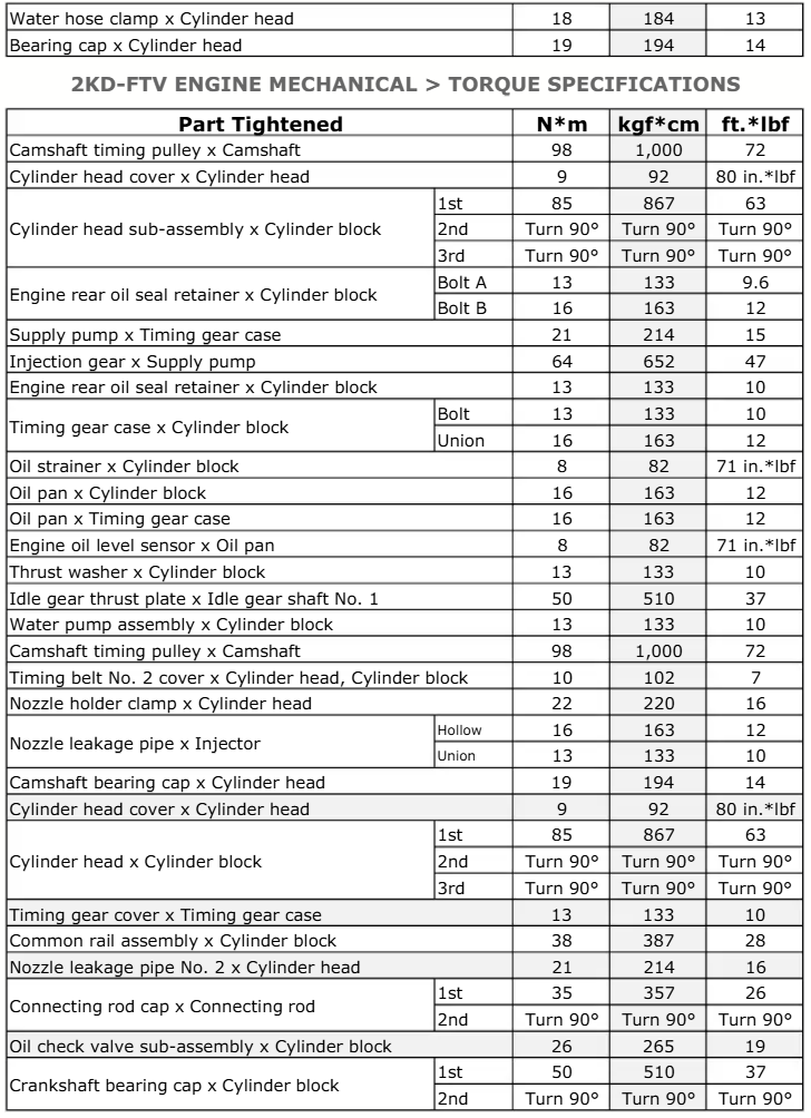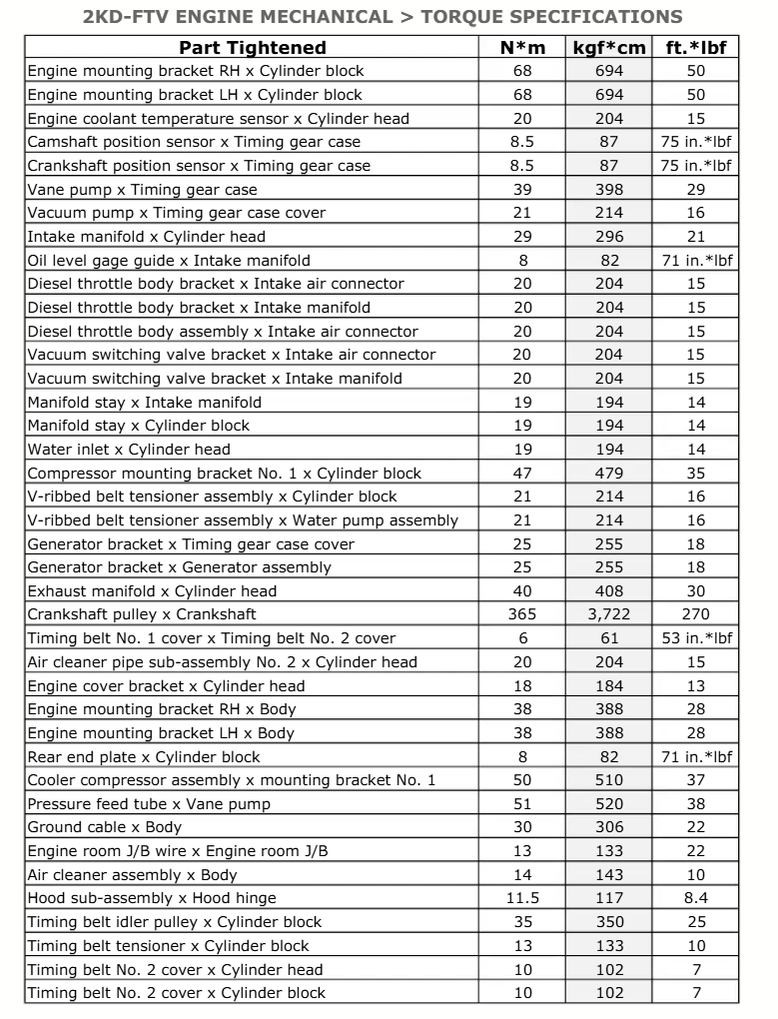 2Kd-Ftv Engine Mechanical Torque Specifications: Download